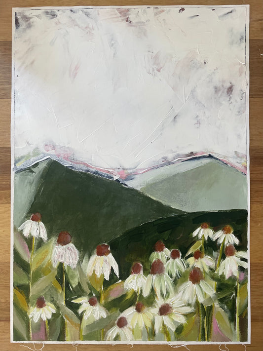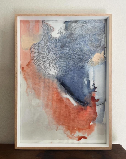 These pieces have all been created this year - while moving house (see "Bent but alive") and having a baby!! All throughout both of these events - there has been a table set up somewhere in the house - with canvas, paper, paintbrushes and paint. It's like my diary. I write it all out.